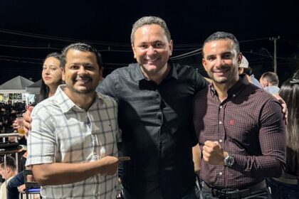 Pré-candidato a deputado Júnior Diamantino, prefeito de Xambioá Mayck Câmara e o empresário Marco MB participam da 12ª Festa do Trabalhador em Pedro Afonso